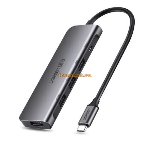 Ugreen 30441 Bộ chuyển đổi Type-C sang 1 USB 3.0 + 2 USB 2.0 + HDMI + hỗ trợ nguồn Type-C