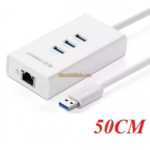 Thương hiệu: Ugreen Mã sản phẩm: 20260 Tính năng: Chuyển đổi cổng USB sang mạng Lan, Bộ chia USB 3 Cổng 3.0. Màu sắc: Trắng Tốc độ truyền dữ liệu: Mạng lan Rj45 10/100/1000Mbps; USB 3.0 HUB 5Gbps (Max) Chiều dài cáp: 50cm Mạng tương thích: IEEE 802.3; 802.3u và 802.3ab Kích thước: 90.5 x 50 x 21 mm