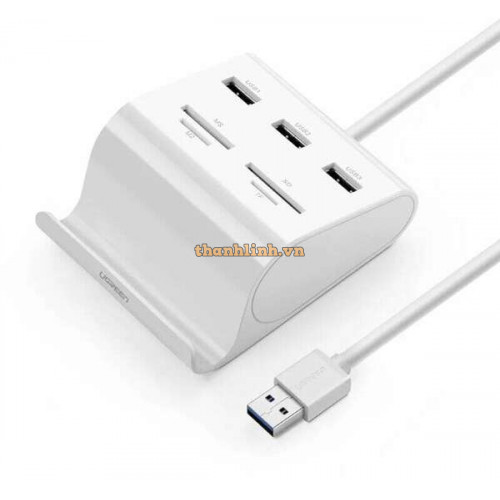 Đồ đọc thẻ với Chân đế USB 3.0 3 Ports Hub+ model US156 trắng 1M Ugreen 30342