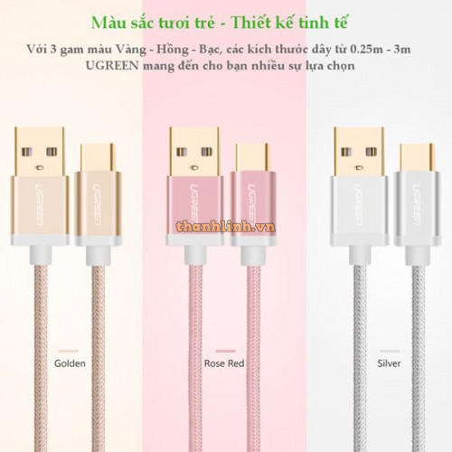 Cáp USB-C to USB 2.0 dài 0,5m màu Gold chính hãng Ugreen 20859 cao cấp