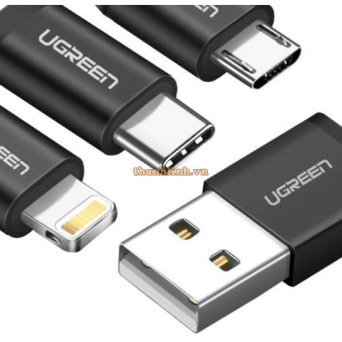 Cáp kèm bộ chuyển cổng Lightning vỏ nhôm Micro USB ra USB 0 5M đen 0 5M đen Ugreen 30469