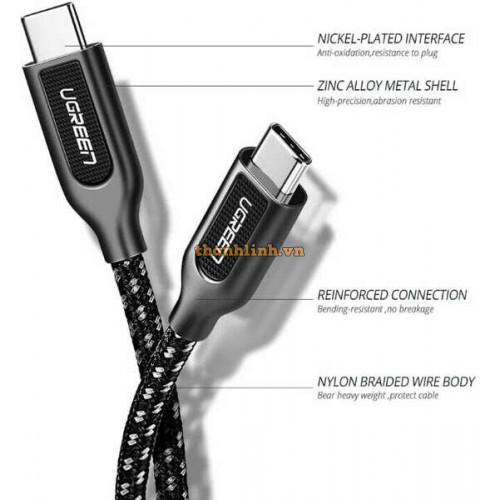 Cáp dữ liệu Zinc alloy Type-C ra Type-C 2.0 3A model US265 1M Ugreen 50224