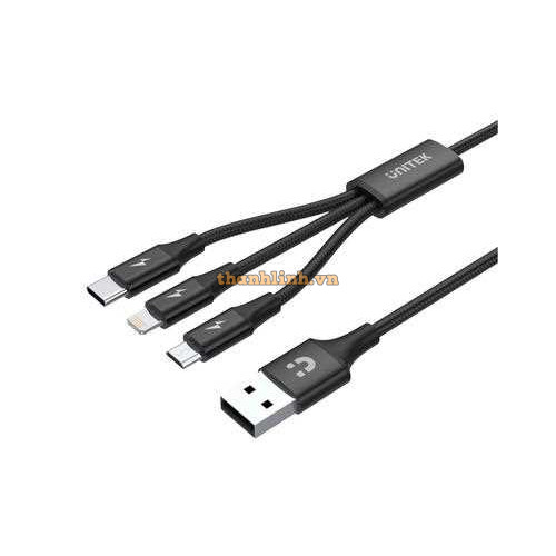 Cáp Sạc Đa Năng 3 Trong 1 USB-A Sang USB-C / Micro USB / Lightning UNITEK C14049BK