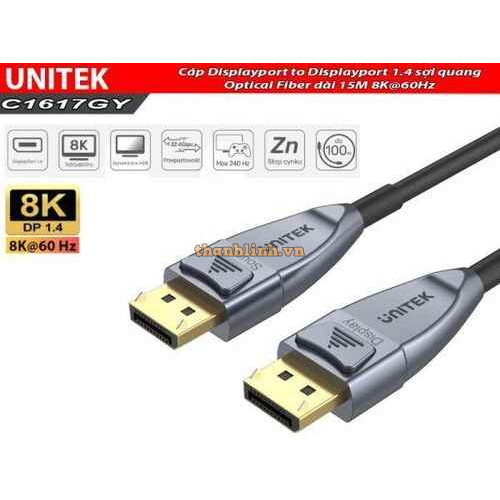 Cáp Displayport to Displayport 1.4 sợi quang Optical Fiber dài 15M 8K@60Hz Unitek C1617GY