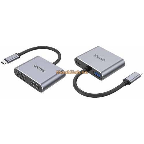 Hub 4 Trong 1 Type-C -> VGA + HDMI + USB-A + PD 100W UNITEK D1049A