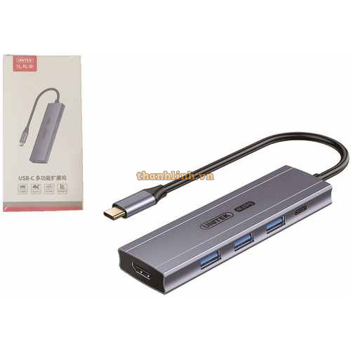 Bộ Chuyển Đổi 5 Cổng Type-C -> USB3.0 + HDMI 4K@30Hz + PD 100W UNITEK D105A
