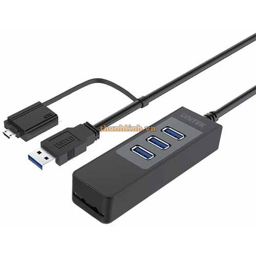 HUB 3-1 USB 3.0 + TF/SD UNITEK H1108ACỔNG VÀO USB 3.0(5Gbps)CỔNG RA 3 USB 3.0(5Gbps), THẺ TF/SDCHIỀU..