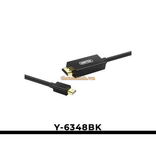Cáp chuyển đổi UNITEK Y-6348BK cho phép kết nối thiết bị có cổng Mini DisplayPort với màn hình, máy chiếu hoặc TV có cổng HDMI.