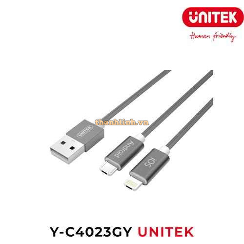 Cáp chuyển USB 2.0 sang Lightning + Micro USB cao cấp UNITEK (Y-C4023GY).