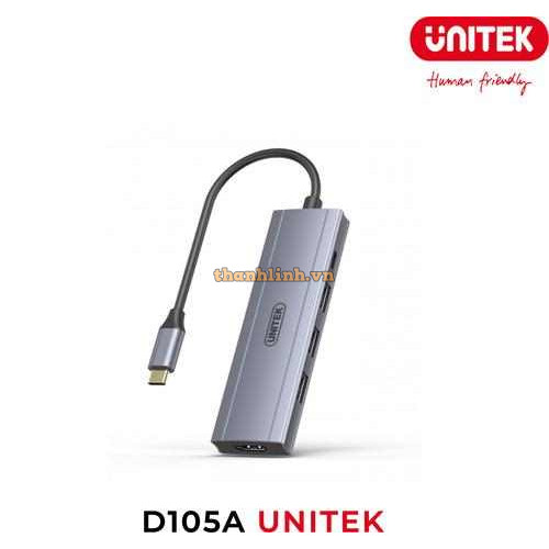 Bộ chuyển đổi đa năng UNITEK D105A chuẩn Type-C, mở rộng linh hoạt nhiều cổng kết nối trên thiết bị hiện đại.