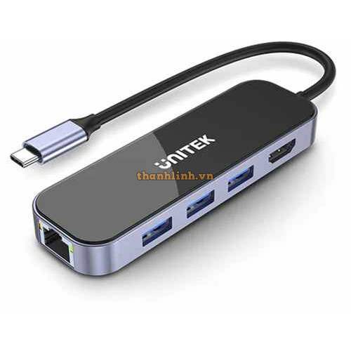 Bộ Chuyển Đổi 6 Cổng Type-C -> USB + LAN + HDMI + PD 100W UNITEK D1084A