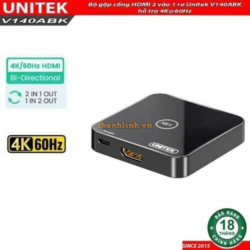 Bộ gộp cổng HDMI 2 vào 1 ra Unitek V140ABK hỗ trợ 4K@60Hz