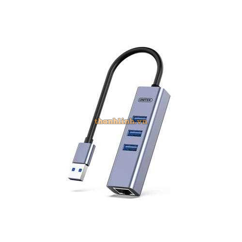 Bộ chuyển đổi UNITEK Y-3083Q tích hợp 3 cổng USB 3.0 và 1 cổng LAN Gigabit, giúp mở rộng kết nối USB đồng thời bổ sung khả năng truy cập mạng có dây ổn định.