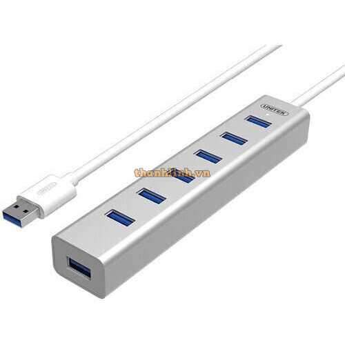 Bộ chia 7 cổng USB 3.0 chính hãng vỏ nhôm hổ trợ nguồn cao cấp Unitek Y-3090