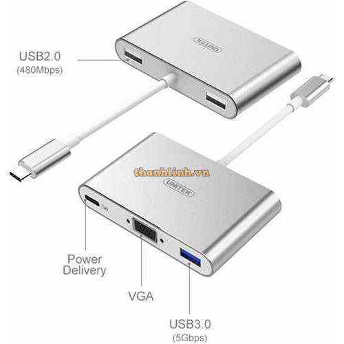 Hub Chia 3 Trong 1 Type-C -> USB 3.0 + USB 2.0 + VGA UNITEK Y-9102