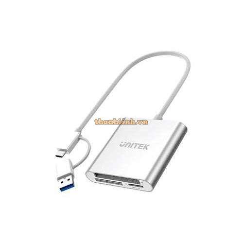 Đầu đọc thẻ nhớ đa năng UNITEK Y-9313D với thiết kế nhỏ gọn, tích hợp cổng USB-A và USB-C giúp dễ dàng truy cập các loại thẻ nhớ phổ biến như CF, SD và MicroSD.