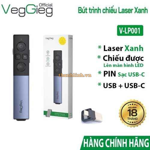 Bút Trình Chiếu Không Dây VegGieg V-LP001 – Laser Xanh có thể chiếu lên Màn Hình LED, Pin Sạc cổng USB-C
