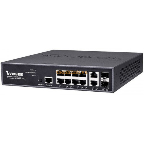 8-Port GbE RJ45 ( PoE ) +2-Port GbE RJ45/SFP + 1-Port RJ45 Console VivoCam Layer 2 Plus Managed PoE Switch ( PoE Power Budget Max. 130W ) Integrate with VIVOTEK Camera for surveillance application