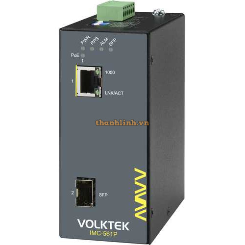 Bộ chuyển 1 x Gigabit PoE+ to 1 x FX/GbE SFP Industrial Converter Volktek IMC-561P