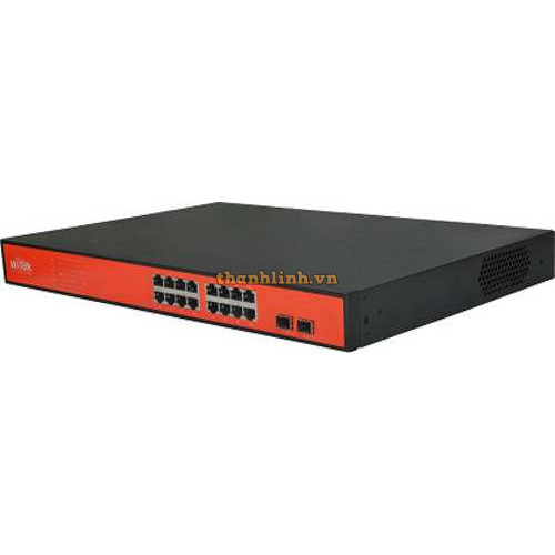 -16 Port Fast Ethernet và 2 Port Gigabit Ethernet-Tổng số port PoE: 16 (Port 1 - 16)-Tổng số port Et..