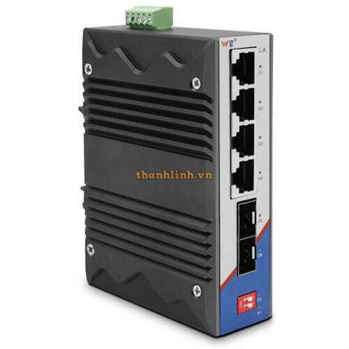 - Hỗ trợ 4 cổng 10/100/1000Base-T(X) + 2 cổng 1000Base-X (khe cắm SFP), DIN Rail, điện áp DC9-48V.