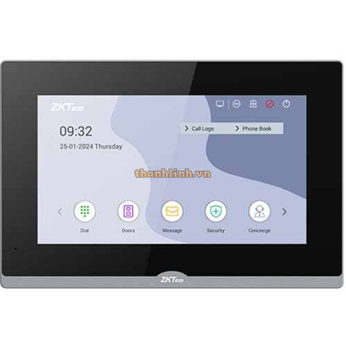 Màn hình chuông cửa IP ZKTeco VT07-B22A- Màn hình chuông cửa IP trong nhà.- Tích hợp hệ thống Androi..